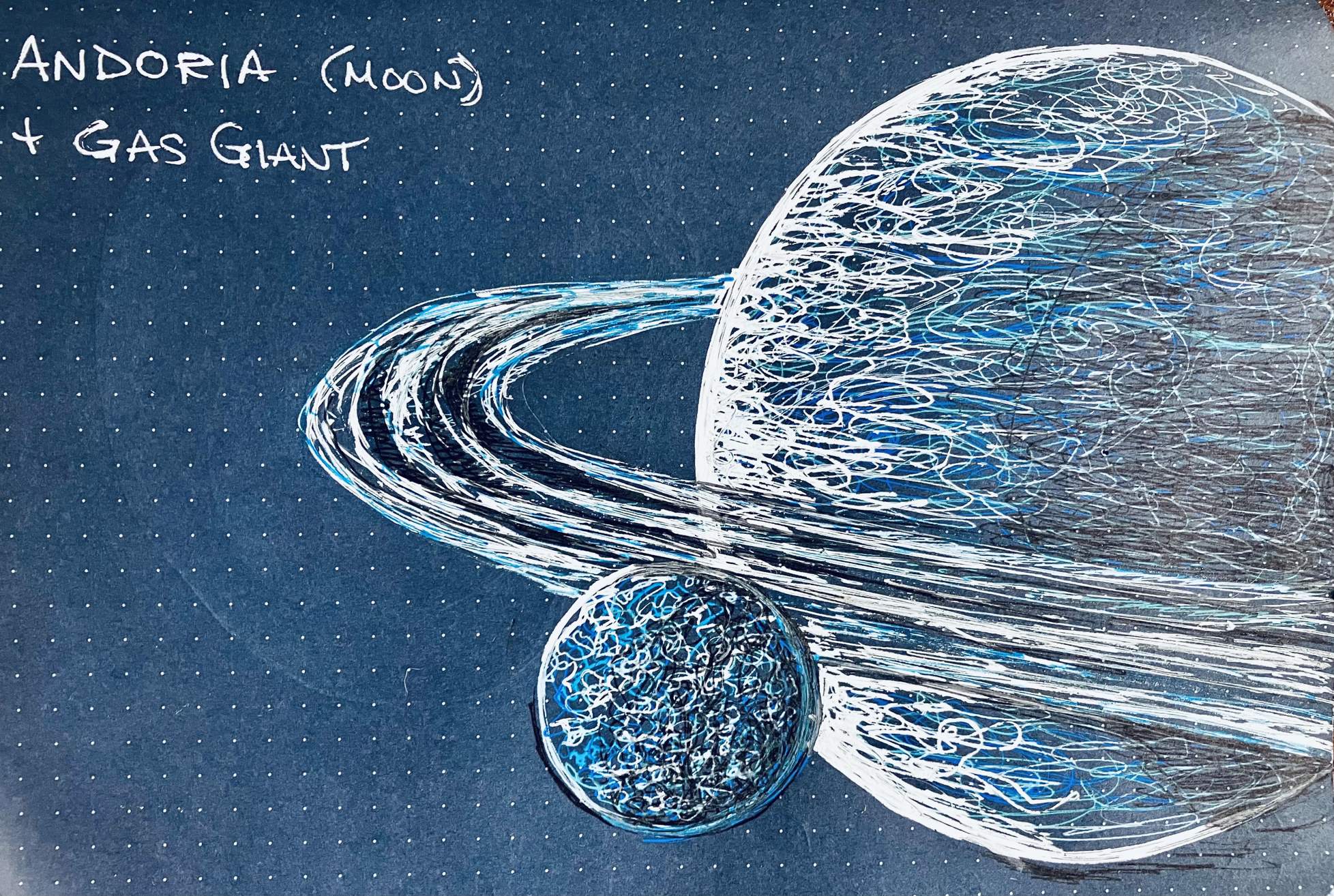 Make a doodle of a planet, planetary system, or solar system. It be any of them, canon or non, existing or original design. It can be a drawing of the world itself or in the form a diagram.